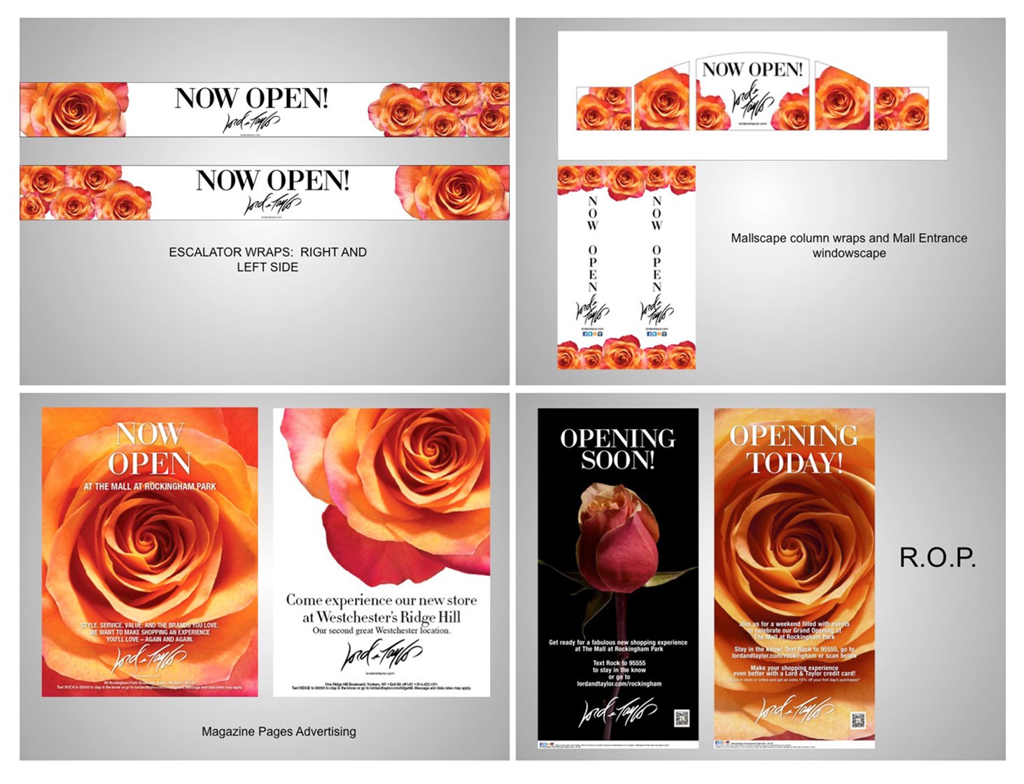 I was tasked to update the iconic Lord & Taylor rose photography and rebrand its new store advertising properties. This was a complete 360 rebranding project covering print, digital, broadcast media, and outdoor advertising placements. The new creatives were going to be repurpose as the company' new store opening assets throughout the years.